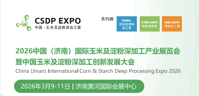 2026中國(濟南)國際玉米及淀粉深加工產(chǎn)業(yè)展覽會暨2026中國玉米及淀粉深加工創(chuàng)新發(fā)展大會將于2026年3月9-11日在濟南黃河國際會展中心召開,本次展會以“創(chuàng)新驅(qū)動·綠色智造”為主題,展示玉米及淀粉深加工產(chǎn)業(yè)中的新產(chǎn)品、新技術(shù)、新裝備、新工藝,打造集“展 示、商貿(mào)、學習、交流”為一體的全產(chǎn)業(yè)鏈展示平臺和交流平臺。