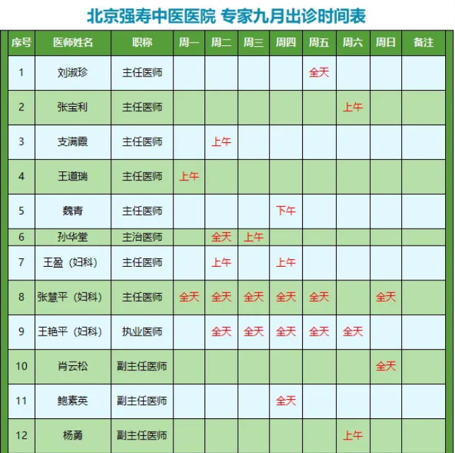 北京強(qiáng)壽中醫(yī)醫(yī)院以弘揚(yáng)中華醫(yī)藥精粹,普及大眾健康為己任。是一所中醫(yī)特色突出、臨床療效顯著的中醫(yī)醫(yī)院。為進(jìn)一步提升醫(yī)療服務(wù)質(zhì)量,完善患者就醫(yī)體驗(yàn),為您的就診提供便利,現(xiàn)整理專家九月出診時(shí)間安排如下: