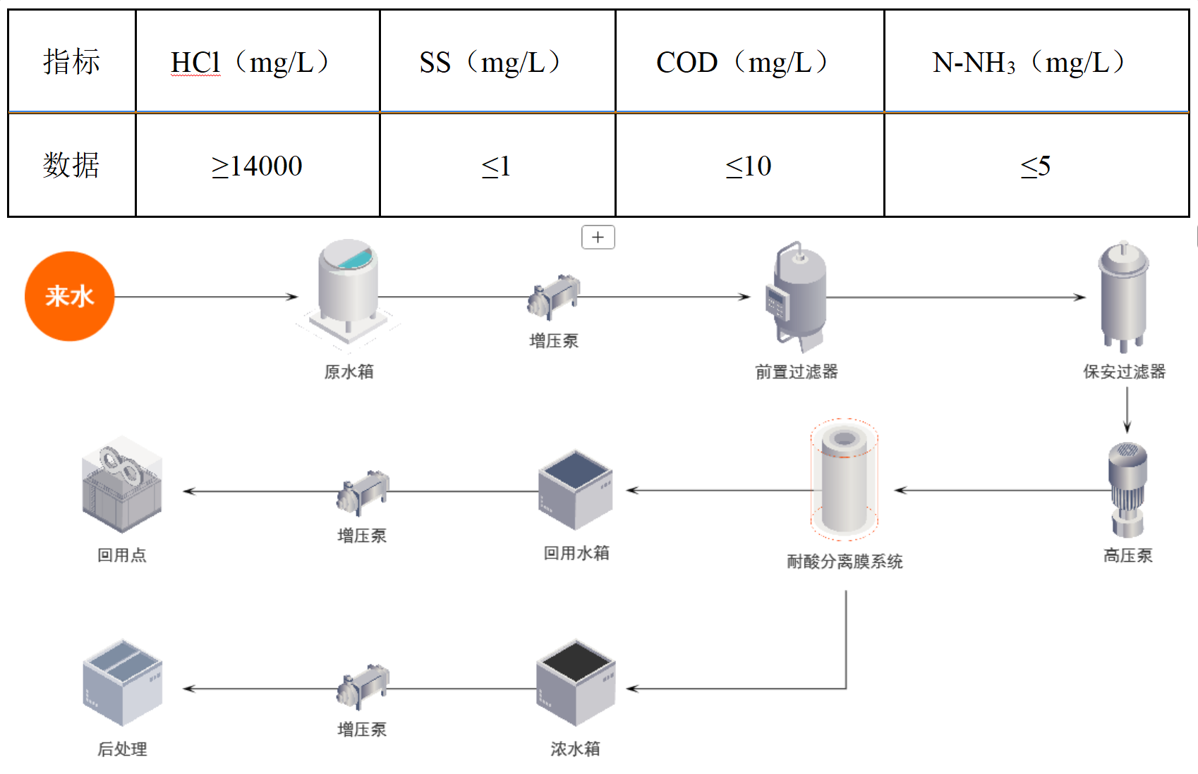萊特萊德以耐酸分離膜元件為依托,利用特有的極限分離技術(shù),凈化廢液中的鹽酸并脫除其中的鹽分和有機(jī)物,使酸達(dá)到回用標(biāo)準(zhǔn),實(shí)現(xiàn)資源化利用,同時(shí)整體降低廢酸量,進(jìn)而減少后續(xù)加堿及蒸發(fā)處理成本。