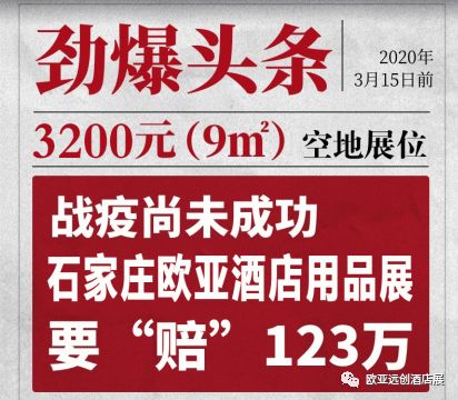其實(shí)歐亞在此刻所做出的決定并非受形勢(shì)所迫被動(dòng)“賠”,而是帶領(lǐng)行業(yè)企業(yè)突破僵局主動(dòng)“賠”。從“1.23”武漢封城,再到現(xiàn)在石家莊歐亞酒店用品展拿出“1.23”百萬誠(chéng)意,賠給酒店用品行業(yè)。了解歐亞的人都知道歐亞展覽在總經(jīng)理王樹云的領(lǐng)導(dǎo)下,一直都以愛黨愛國(guó)、為行業(yè)發(fā)展、為企業(yè)生存而努力。雖然疫情阻斷了許多企業(yè)向前邁進(jìn)的道路,但歐亞愿意為社會(huì)貢獻(xiàn)一份力,為企業(yè)贏得一次機(jī)遇。