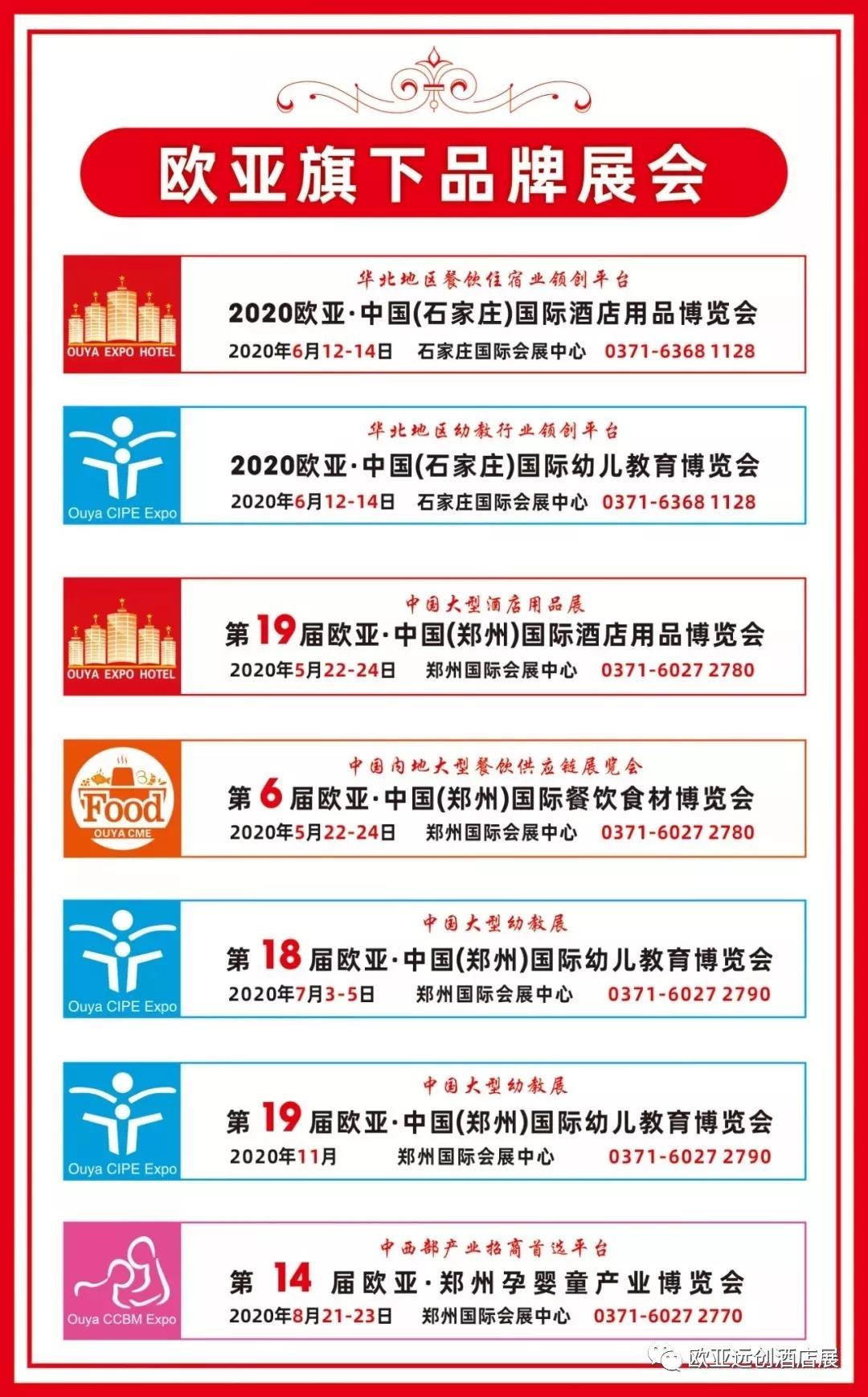 歐亞酒店用品展已經(jīng)成功舉辦18屆,現(xiàn)已成為中國(guó)大型酒店用品展之一,是中西部及華北地區(qū)最專業(yè)的采購(gòu)、交流活動(dòng),酒店用品生產(chǎn)商、制造商、經(jīng)銷商必參的行業(yè)盛會(huì),并在2019年實(shí)行了全國(guó)行戰(zhàn)略,于2020年6月12-14日落地華北“石家莊”,由河南省餐飲與飯店行業(yè)協(xié)會(huì)、河北省飯店烹飪餐飲行業(yè)協(xié)會(huì)聯(lián)合主辦,在宣傳過程中與北京商用廚具協(xié)會(huì)、天津商用廚具協(xié)會(huì)、石家莊久益酒店用品城及各城市酒店用品市場(chǎng)等達(dá)成合作,先后得到了中國(guó)烹飪協(xié)會(huì)、中國(guó)飯店協(xié)會(huì),以及河南、河北、山西、山東、江蘇、湖北、安徽等省行業(yè)協(xié)會(huì)共同參與和全面支持。