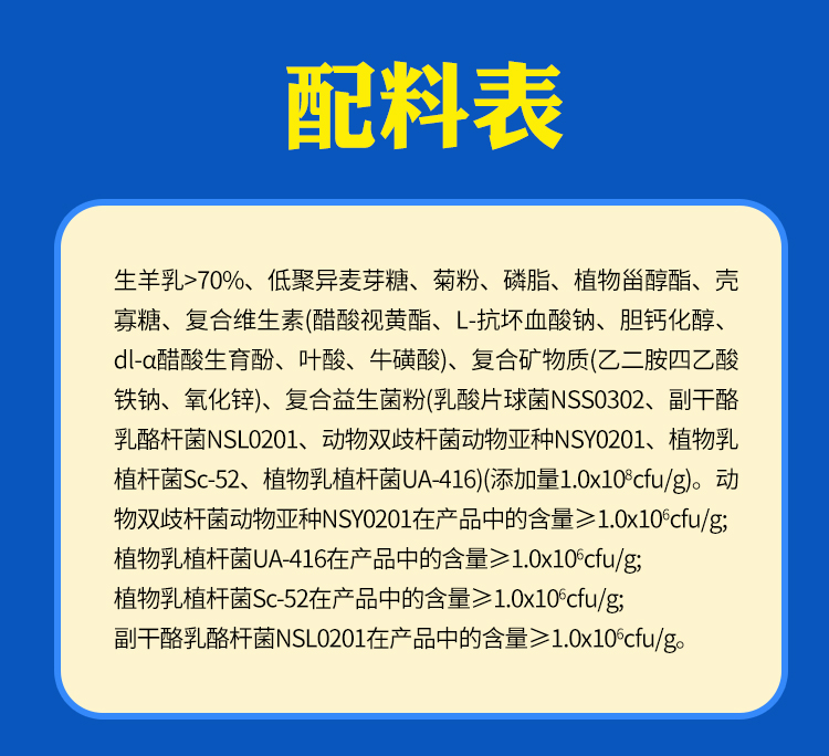 【產(chǎn)品名稱】:克寡糖乳酪桿菌配方羊奶粉