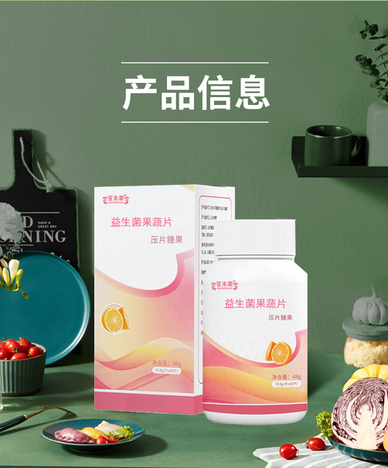 - 益生菌果蔬片OEM加工 片劑ODM定制 百未草 0.8克x60
